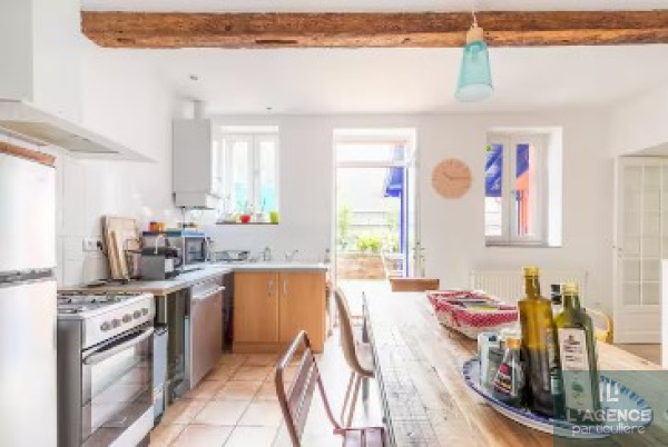 - une cuisine séparée meublée et équipée (plaque induction, hotte, four, réfrigérateur congélateur, lave-vaisselle, four micro-ondes)