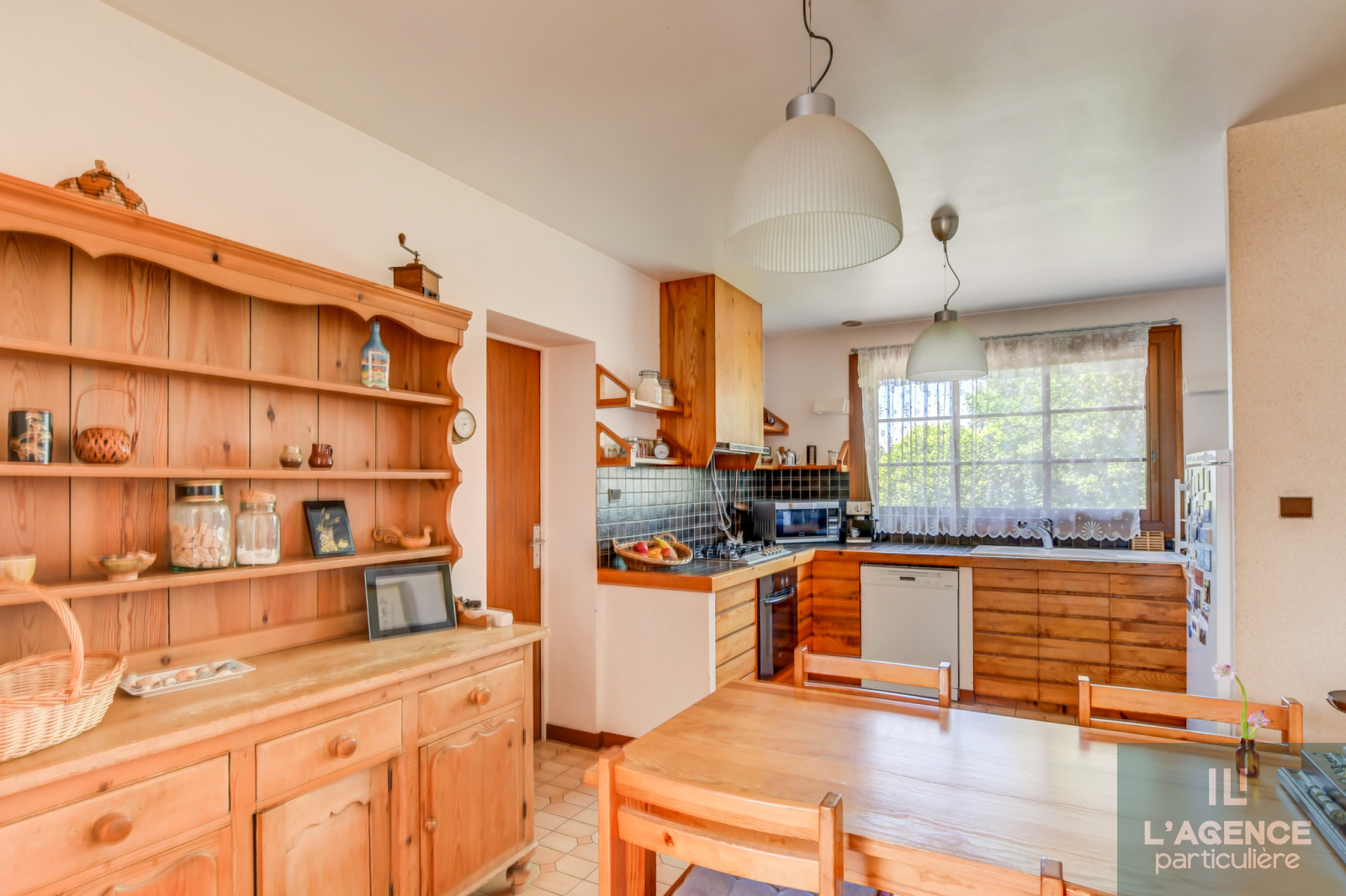 Elle se compose au rez-de-chaussée, d'une entrée, d'une pièce de vie lumineuse d'environ 75m² comprenant, une salle à manger, un espace salon cathédrale avec poële à bois, une cuisine séparée et équipée, attenant un cellier et un espace lingerie donnant accès au sous-sol.