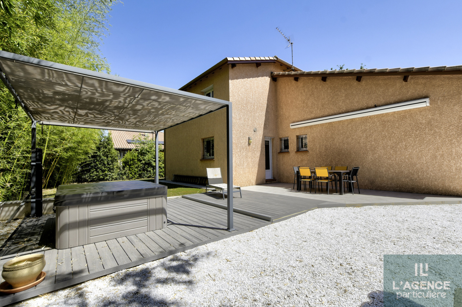 De plus vous bénéficirez d'un double garage, d'un espace de rangement extérieur, d'un spa, le tout sur une parcelle piscineable d'environ 700m².