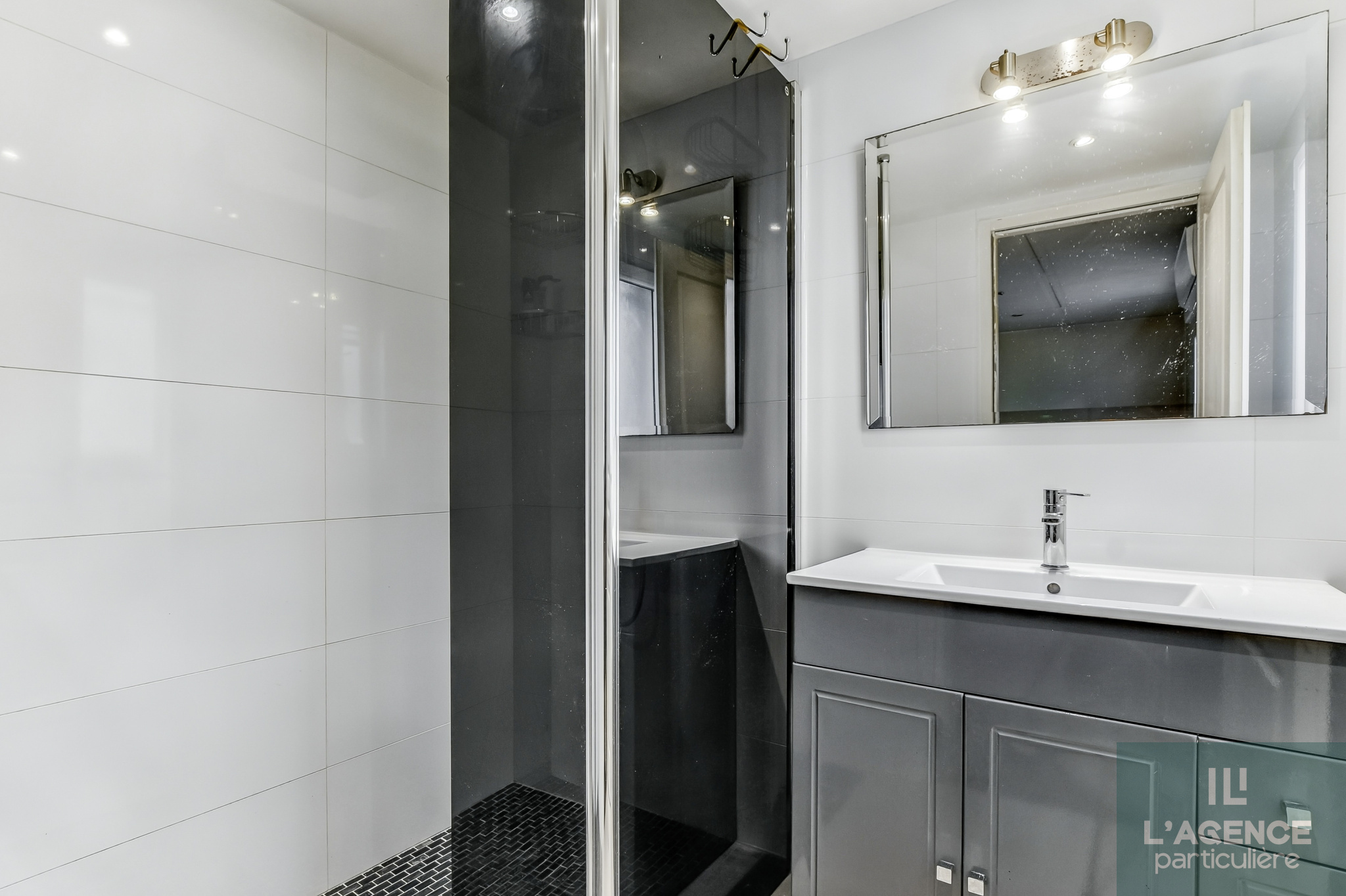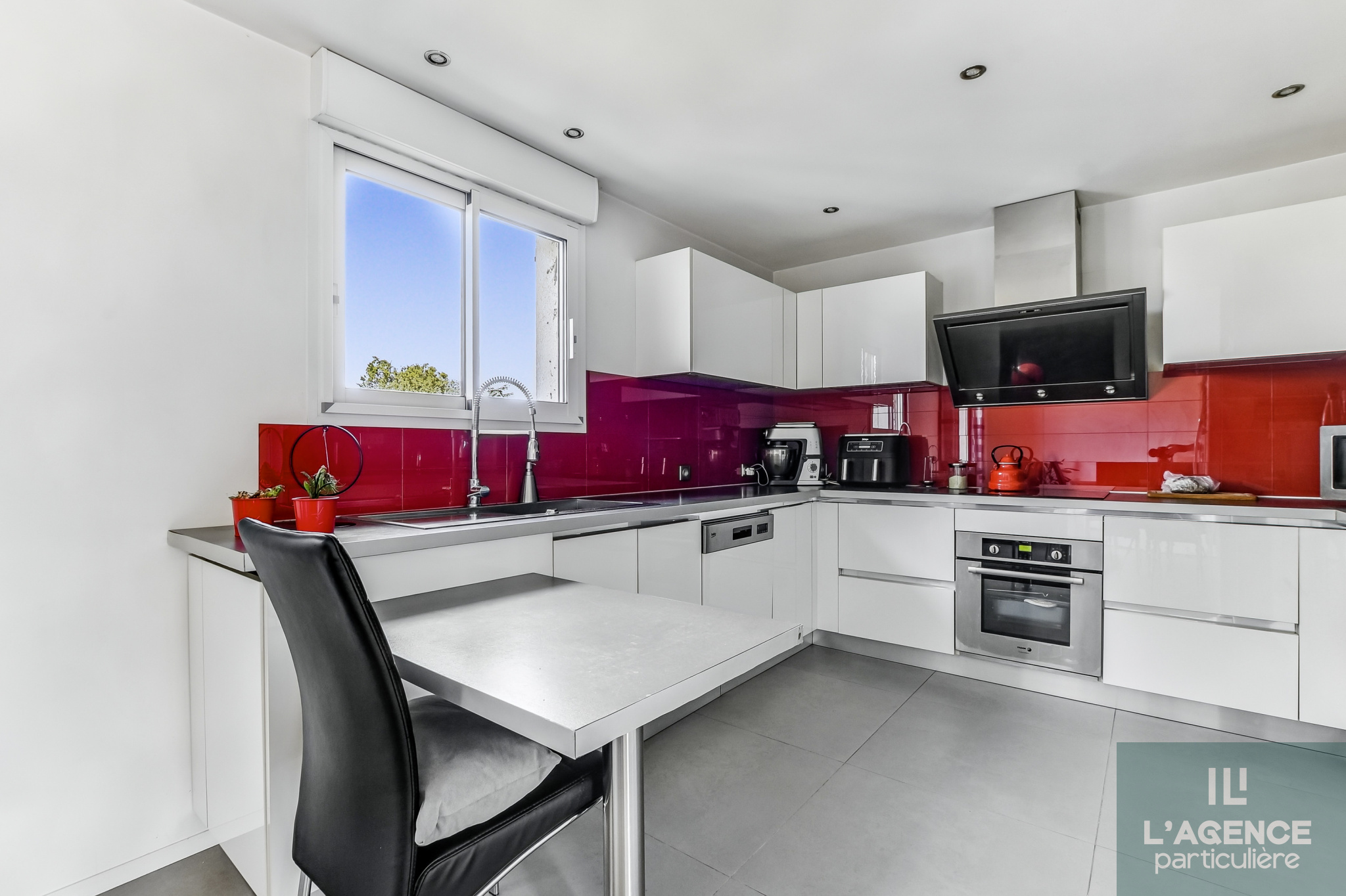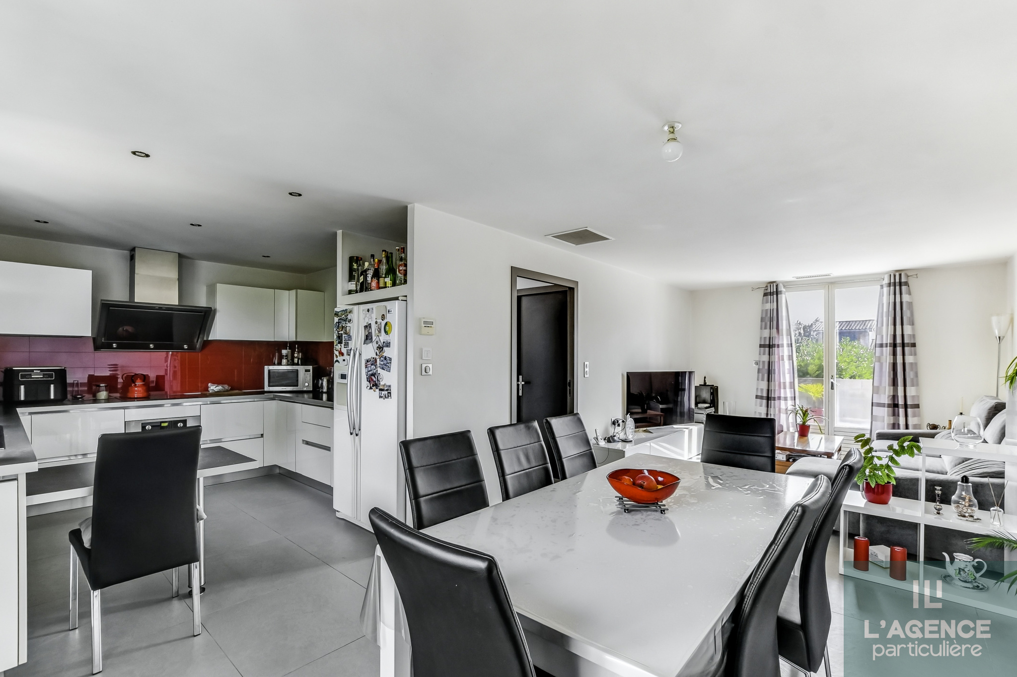 Sur le meme niveau, un salon/séjour traversant apportant ainsi une belle luminosité et donnant sur une grande terrasse, la cuisine équipée qui est ouverte pour plus de convivialité, 3 chambres avec placard, une salle d'eau avec douche à l'italienne et pour un incroyable confort, les murs chauffants, et un wc séparé.