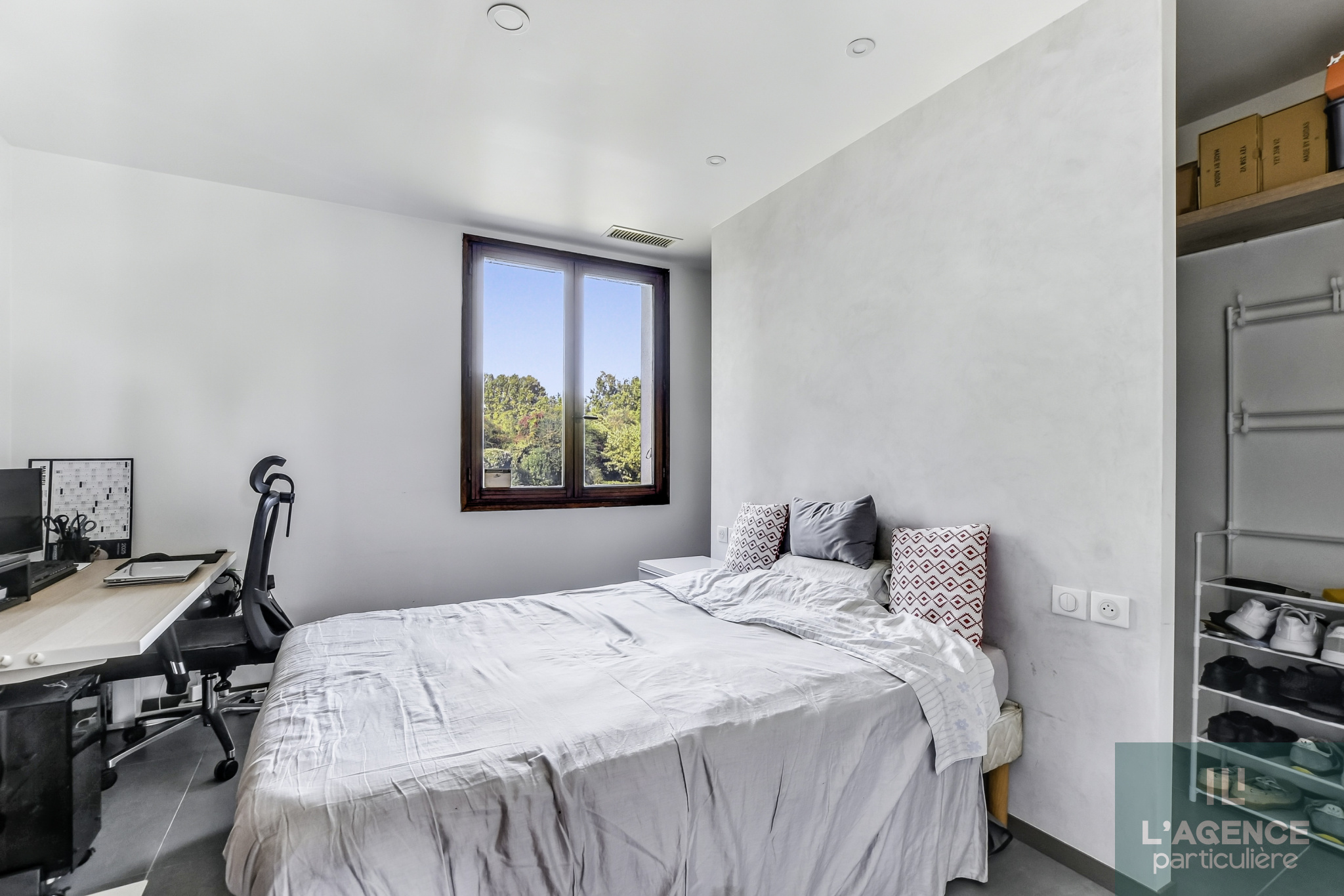 Au rez de chaussée, un espace aménagé en bureau pouvant servir de chambre puisqu'équipé de la climatisation réversible, d'une salle d'eau et d'un wc.